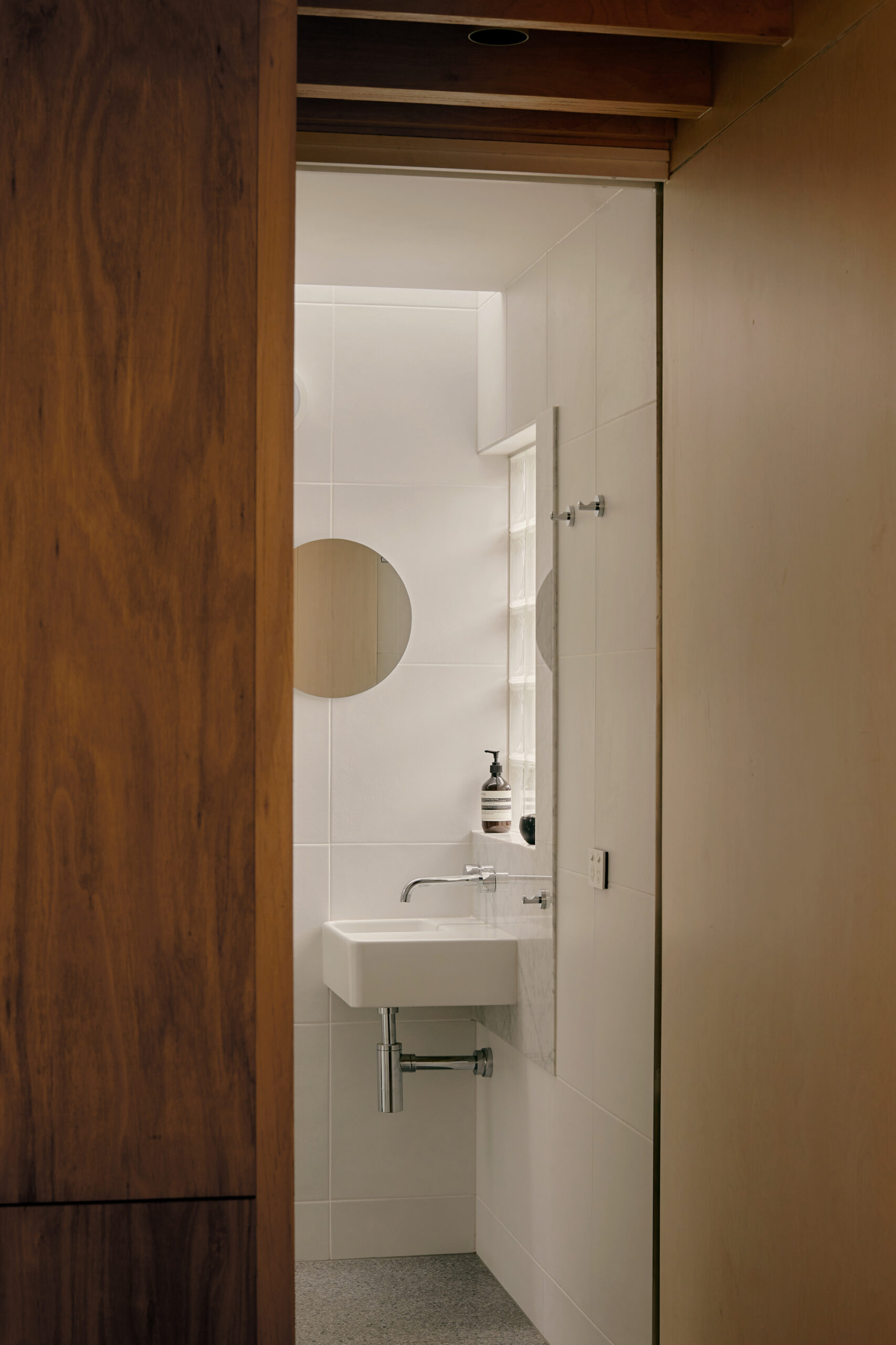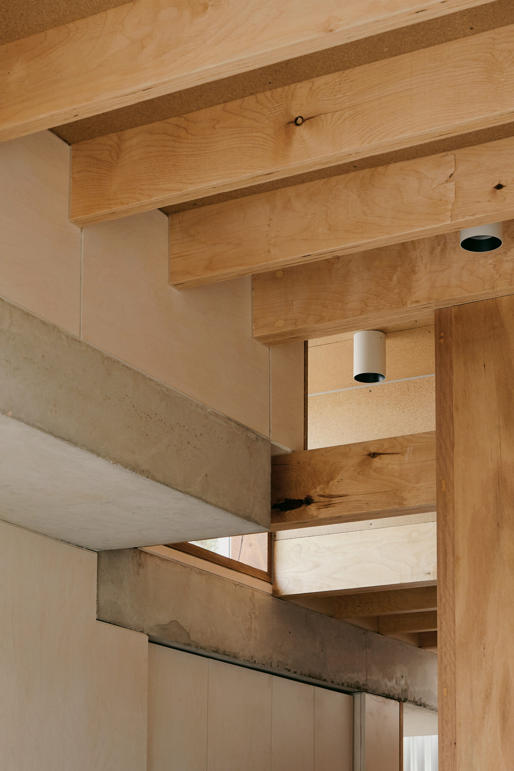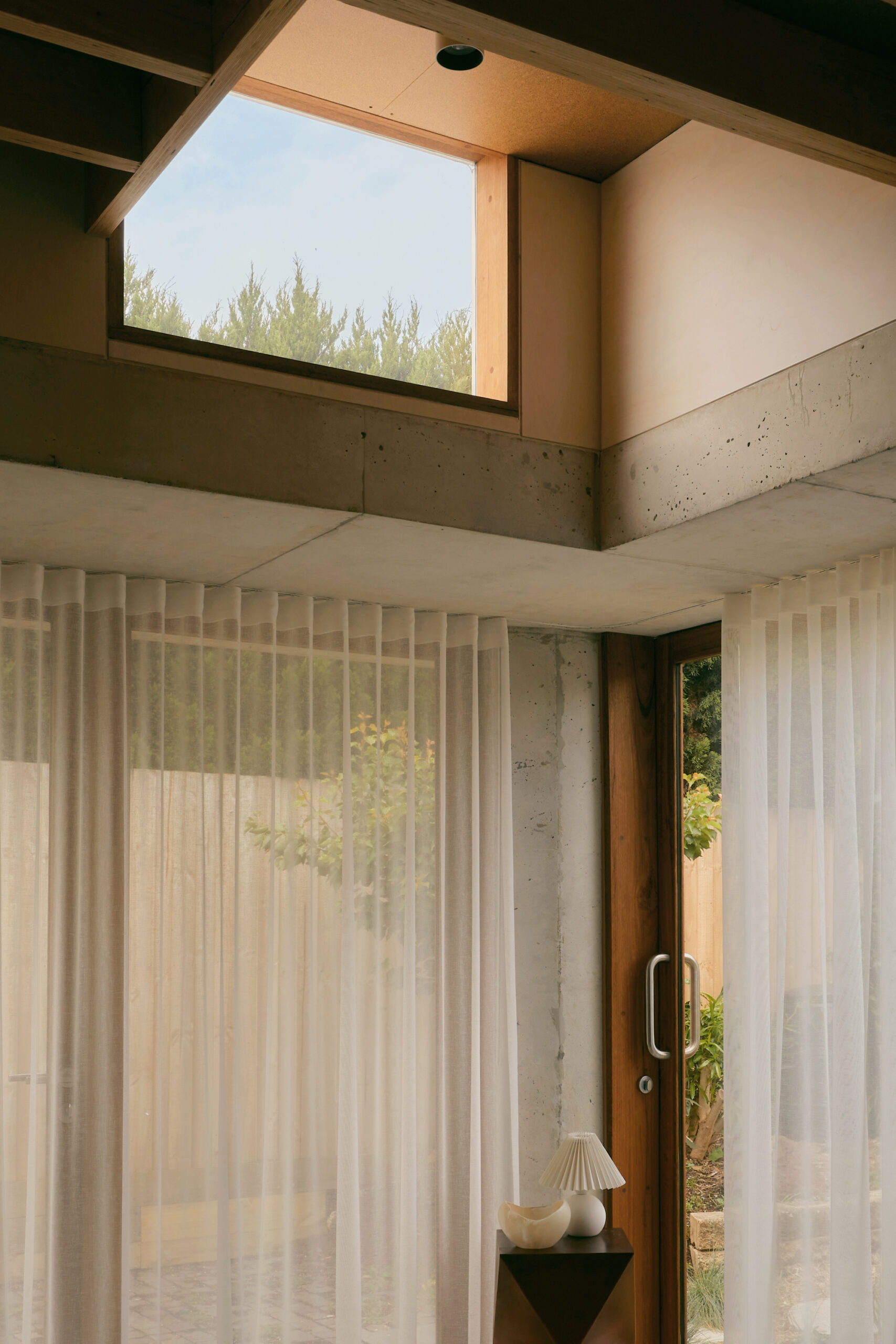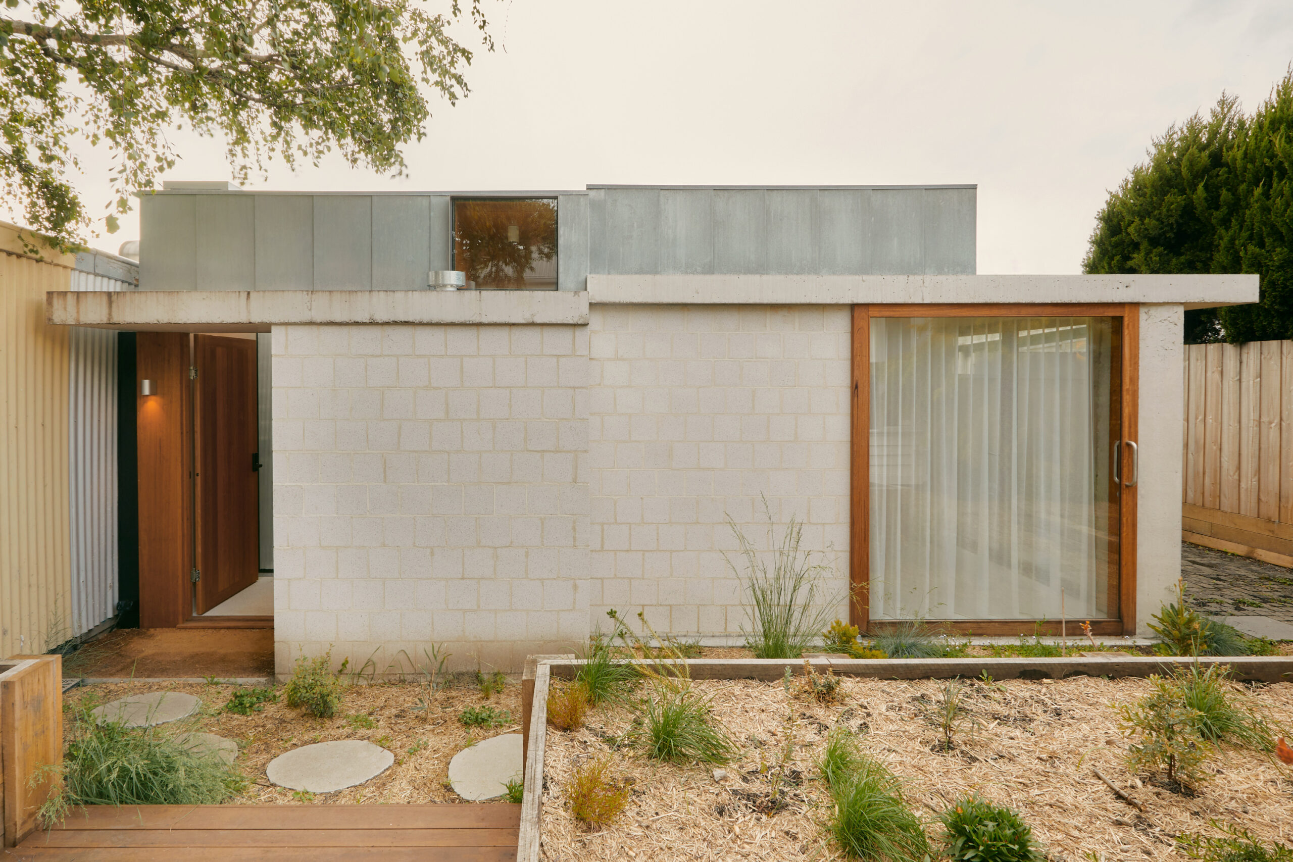 Semi-detached renovation delivered within nine months featuring ceilings of contrasting heights. This unique project features concrete block construction, considered materials and carefully placed windows that balance privacy with natural light.