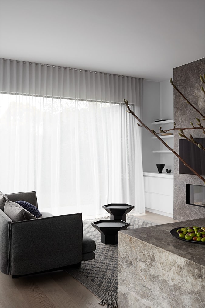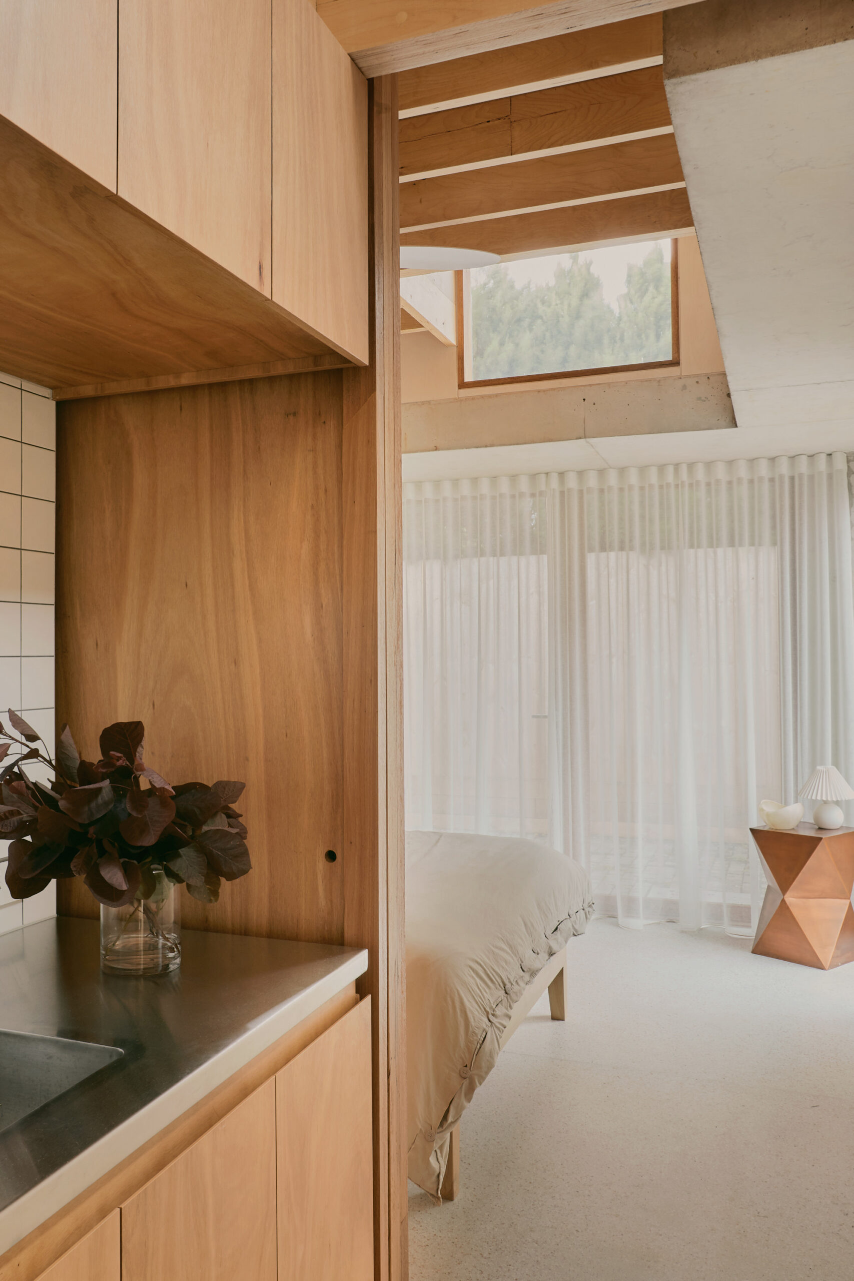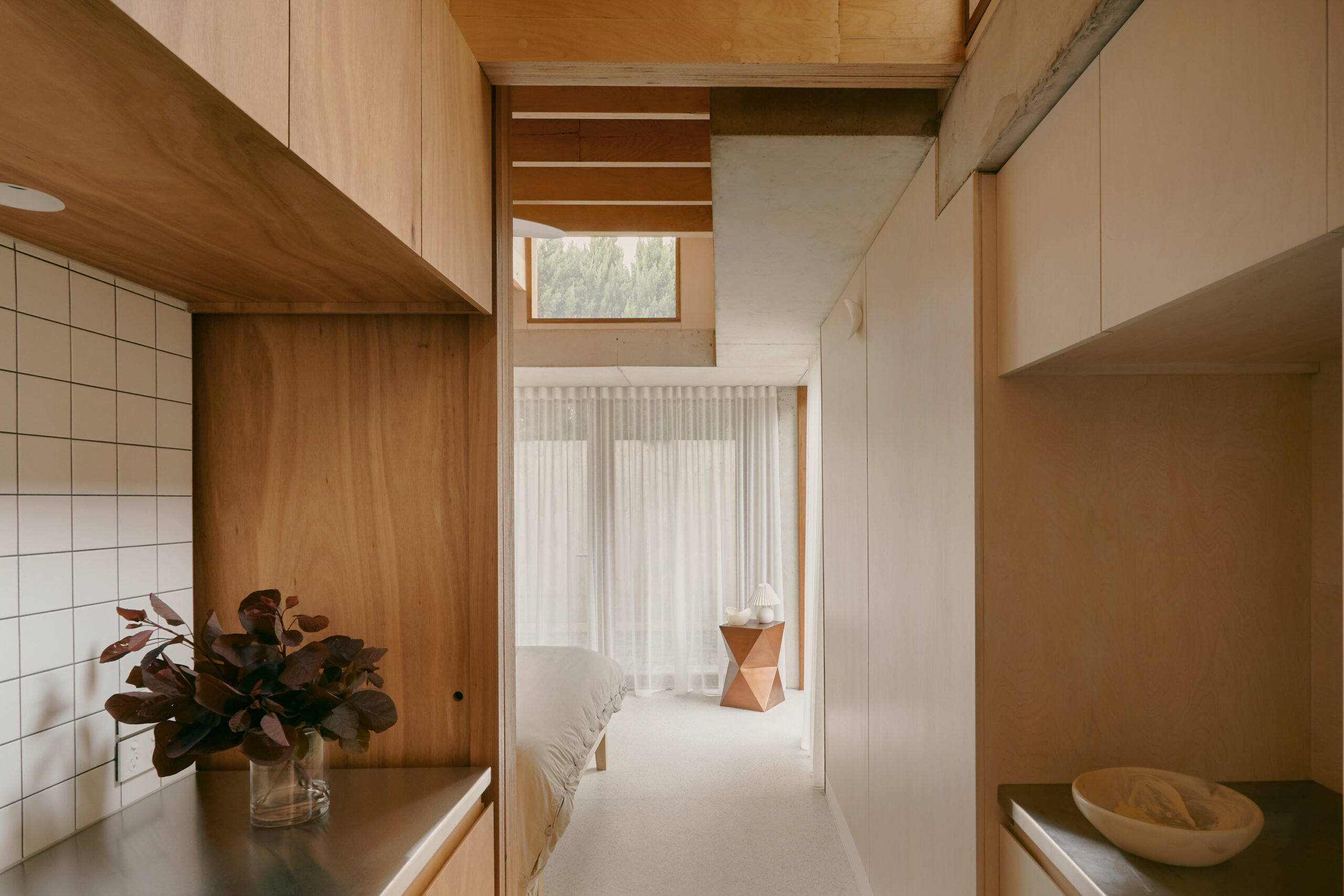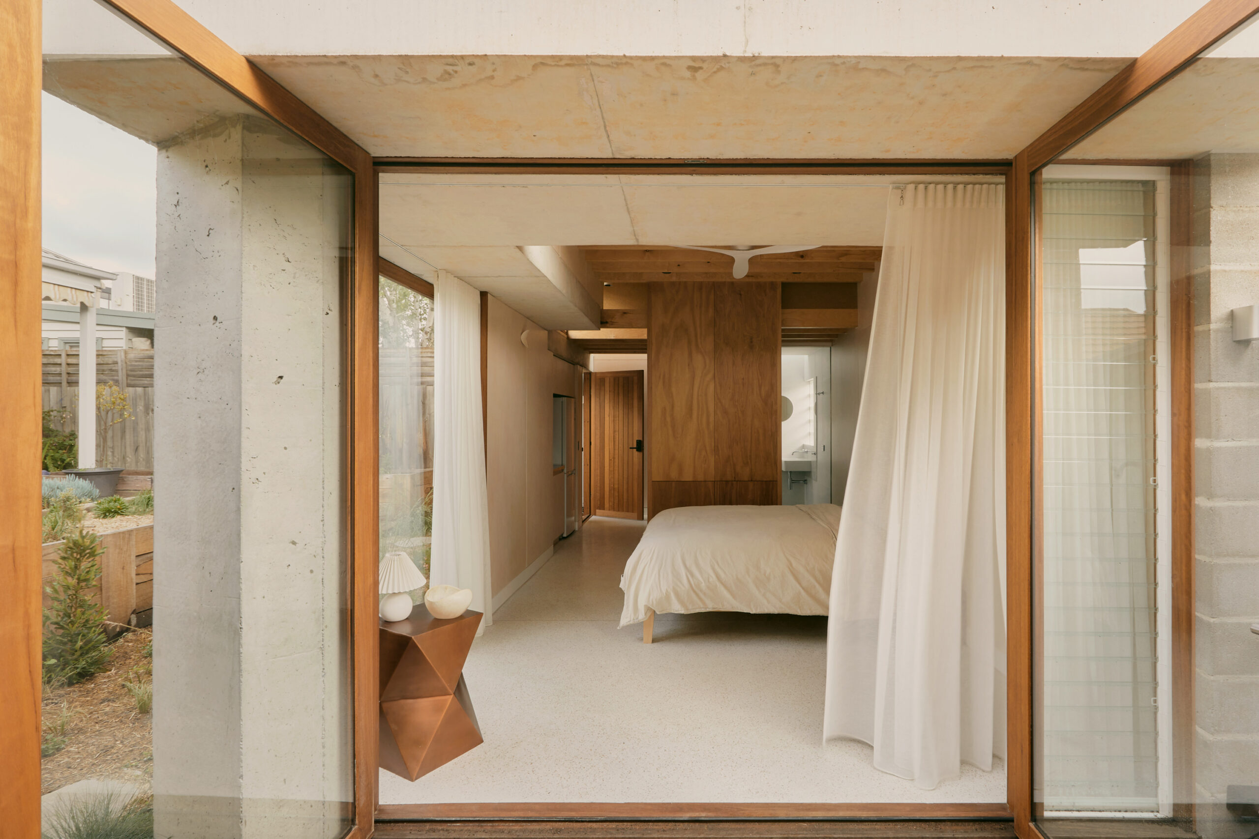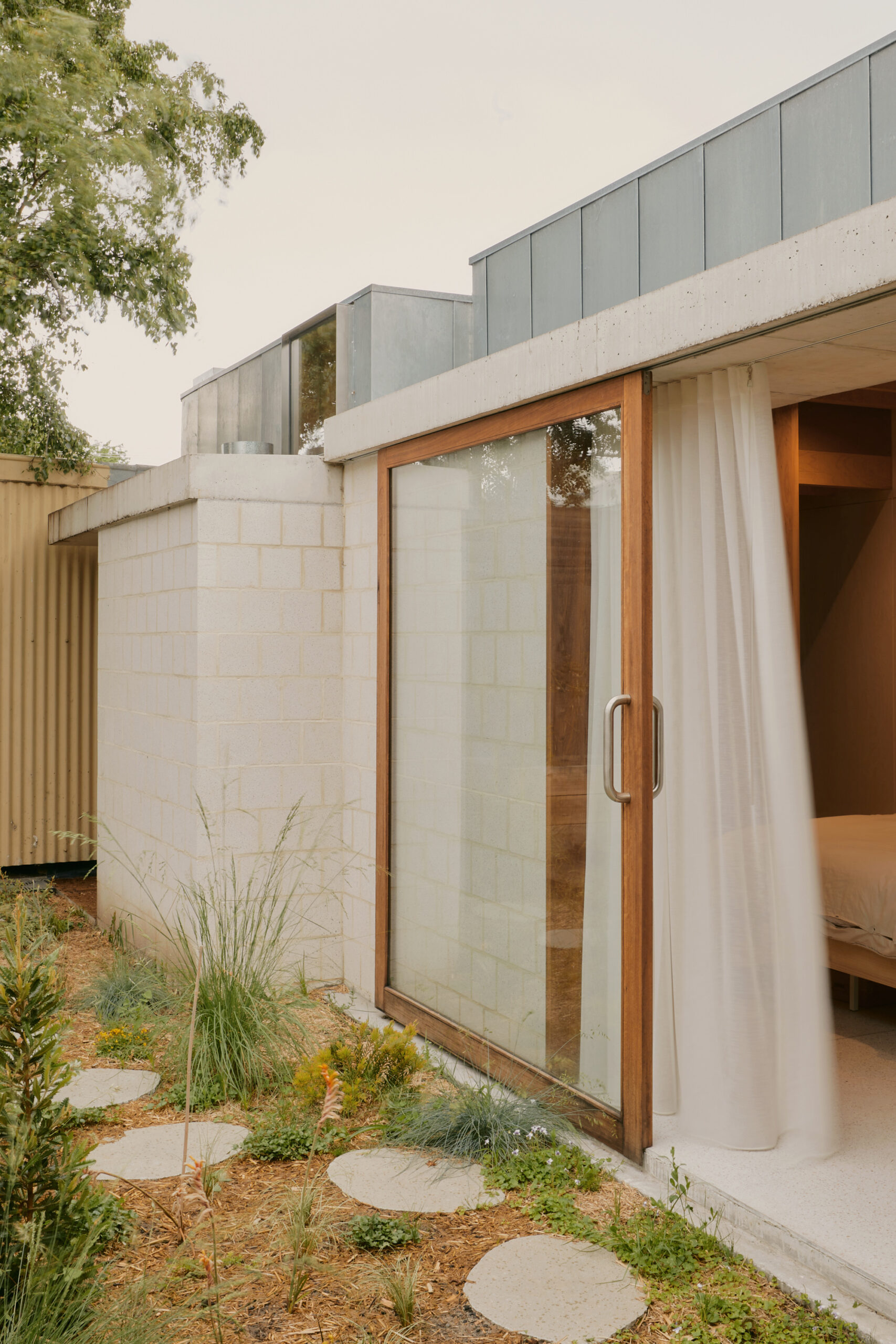 Semi-detached renovation delivered within nine months featuring ceilings of contrasting heights. This unique project features concrete block construction, considered materials and carefully placed windows that balance privacy with natural light.